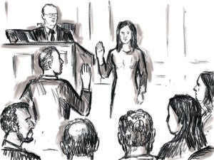 Courtroom Trial Sketch Showing Judge and Female Witness on Stand Taking Oath Sworn In Court of Law October 29, 2025 Print-Friendly Version You Might Also Like No related posts. Leave a Reply Cancel replyYour email address will not be published. Required fields are marked *Comment * Name * Email * Δ